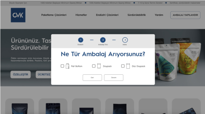 Sadece birkaç tıklamayla yapılandırıcımızla ambalajınızı çevrimiçi olarak yapılandırabilirsiniz.